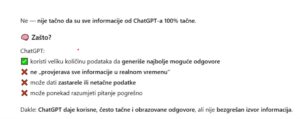 Jasno je da lakši pristup informacijama, u današnjem užurbanom načinu života dosta znači ukoliko želimo potvrdu činjenica koje su nam donekle poznate. Ali, ChatGPT nije školska literatura, a svakako ne najtačniji izvor informacija što ovaj program i potvrđuje.